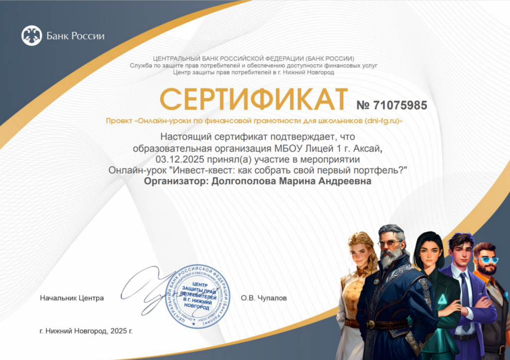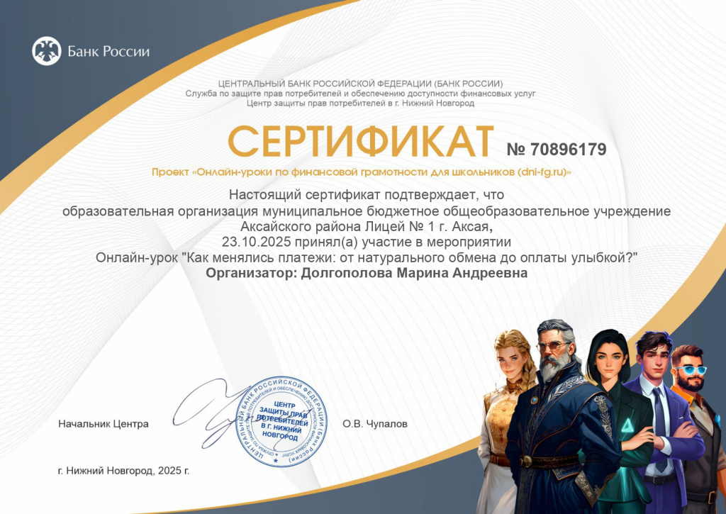 Осенняя сессич 2025 года онлайн-проектов Банка России по финансовому просвещению - «Онлайн-уроки финансовой грамотности для школьников (dni-fg.ru)»: